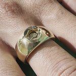 Whether worn as an accessory or a standalone statement piece, the oval topaz seamlessly complements both full round and wide bands within our collection.